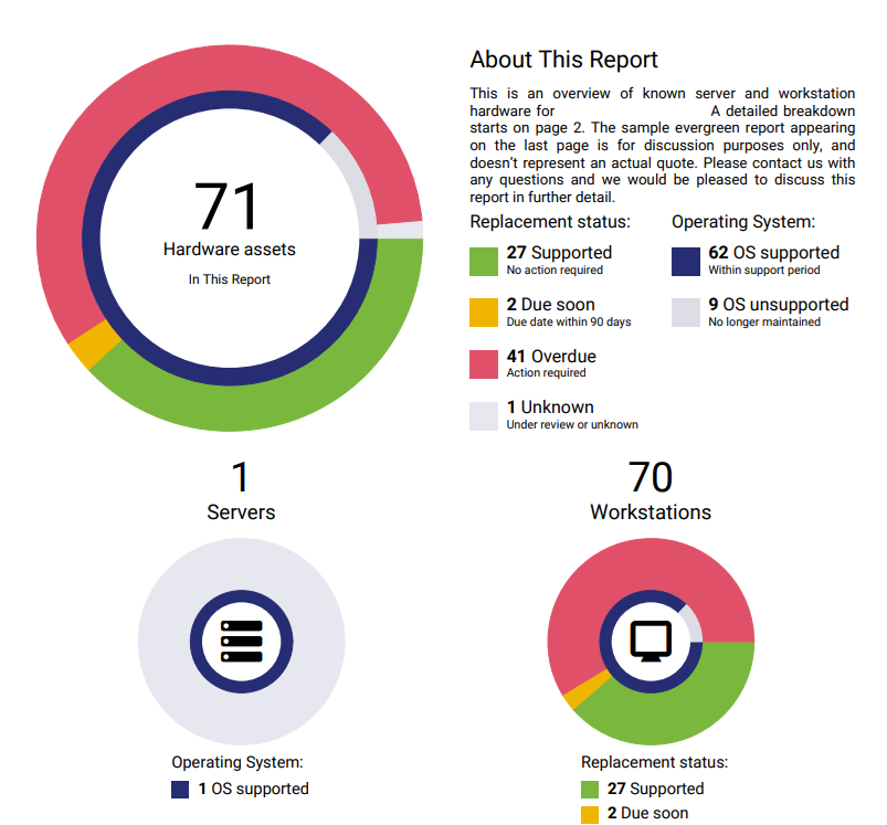 This is an example of the asset reporting that MTG provides as part of our managed services.